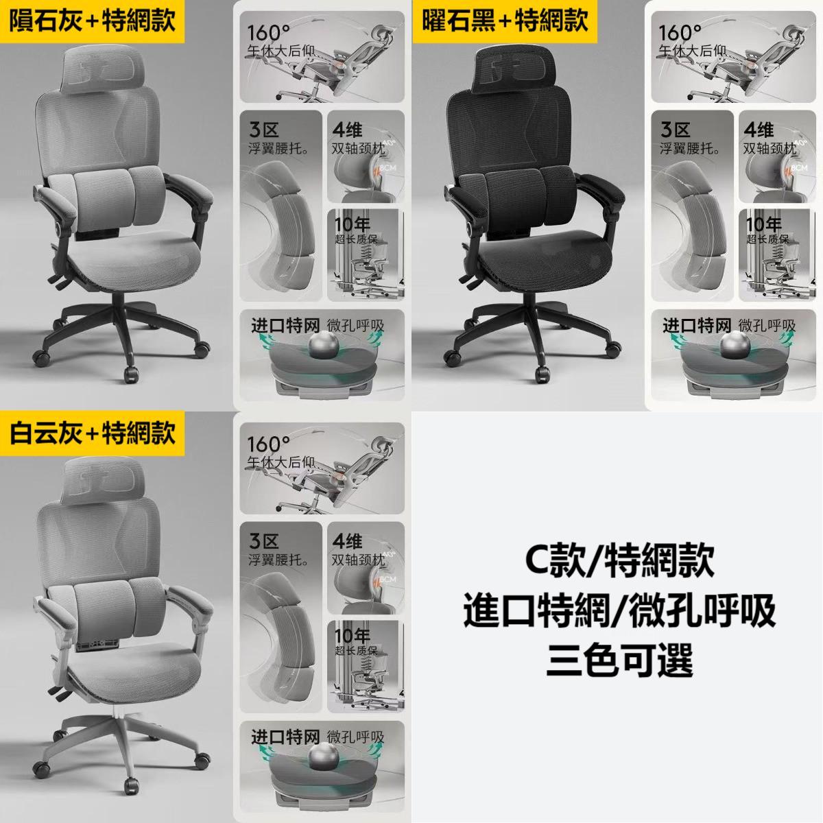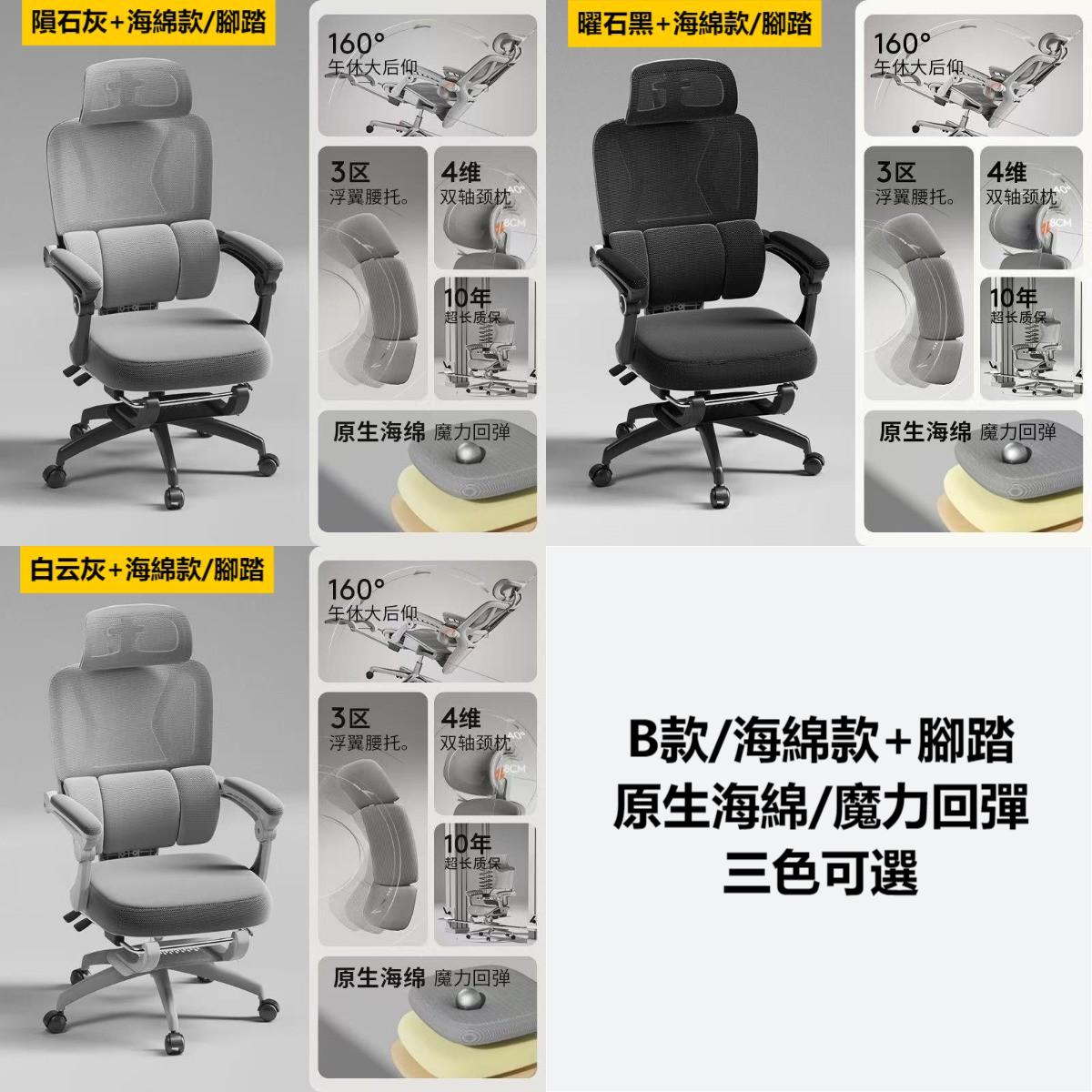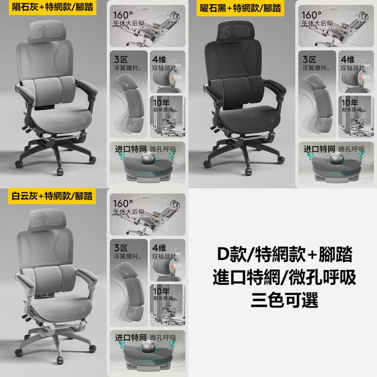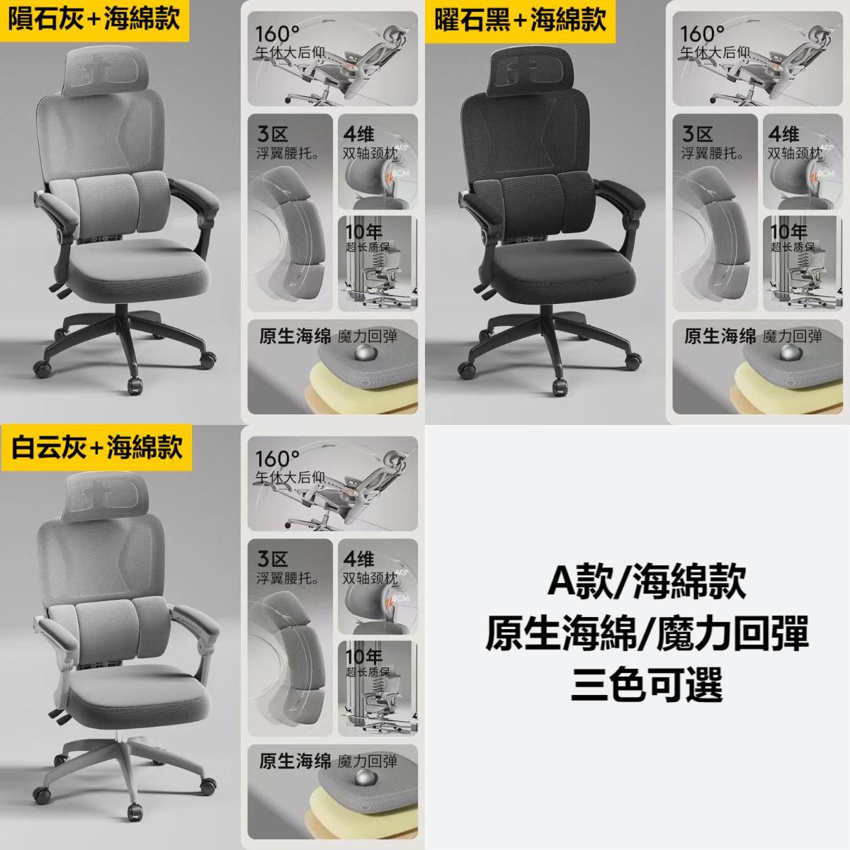 --------------------------------------- 貨號:XC-53 售價:HK$起1288 落單後7個工作日預約時間送貨 產地:中國 --------------------------------------- 產品規格 颜色color:白雲灰色/隕石灰色/曜石黑色 尺寸Size:(D/長)*(W/闊)*(H/高)cm: A款/海綿坐墊款:HK$1288 B款/海綿坐墊款+腳踏:HK$1388 C款/特網坐墊款:HK$1388 D款/特網坐墊款+腳踏:HK$1488 ---------------------------------------
