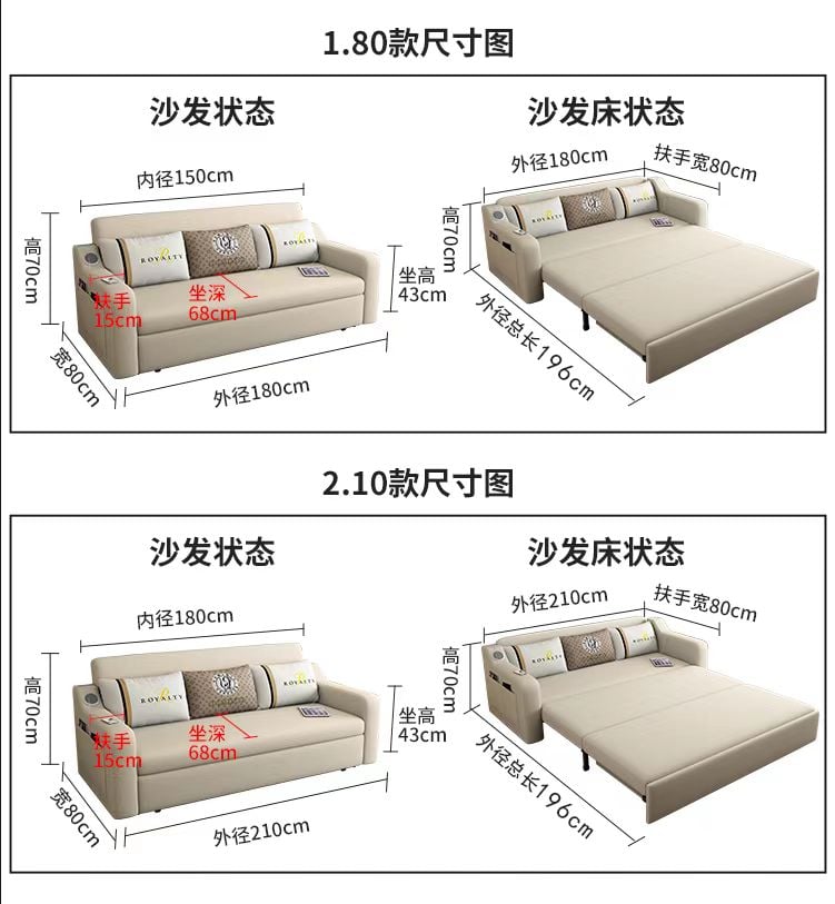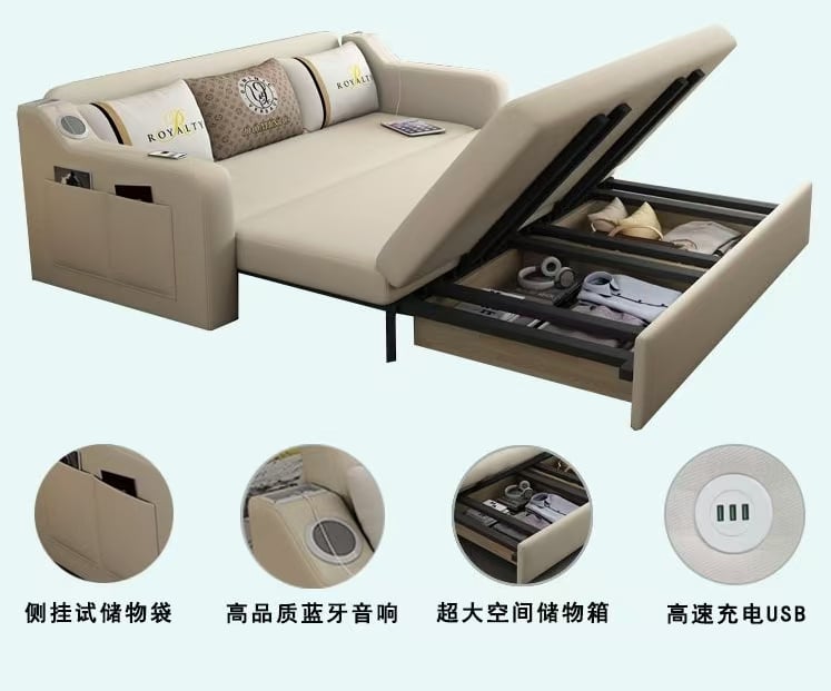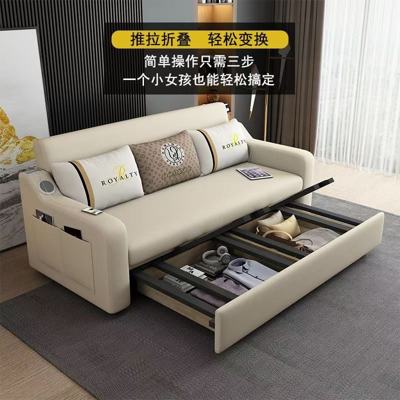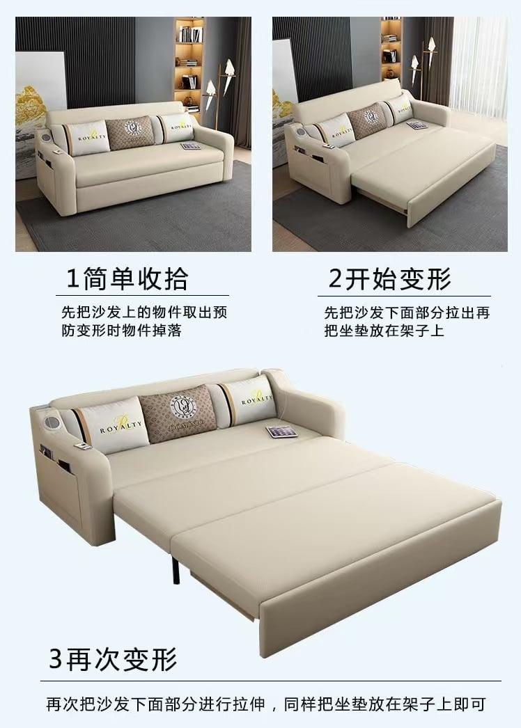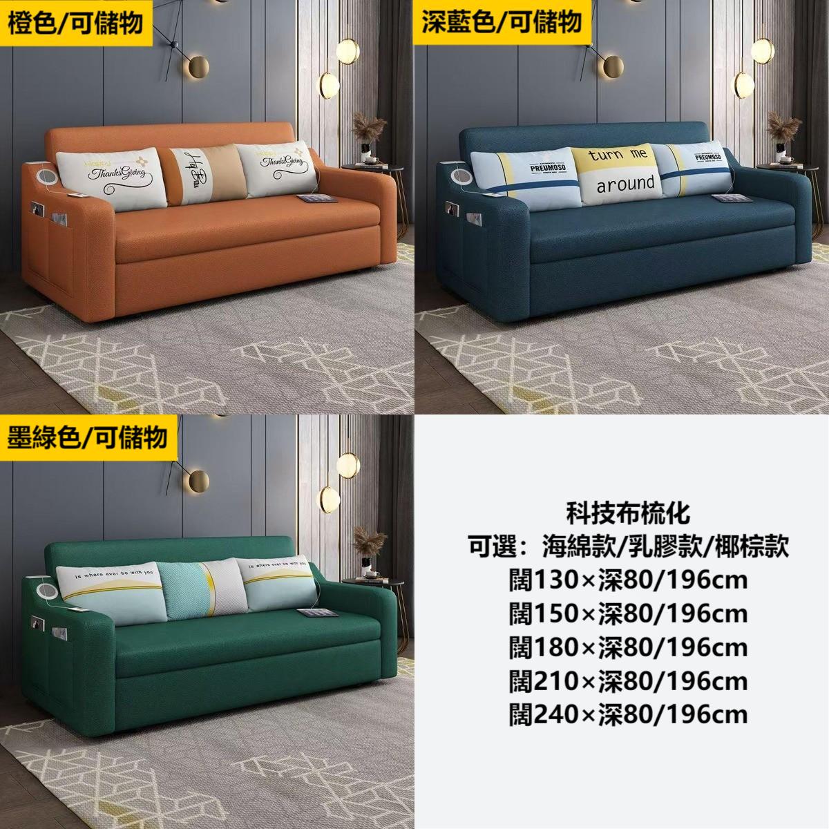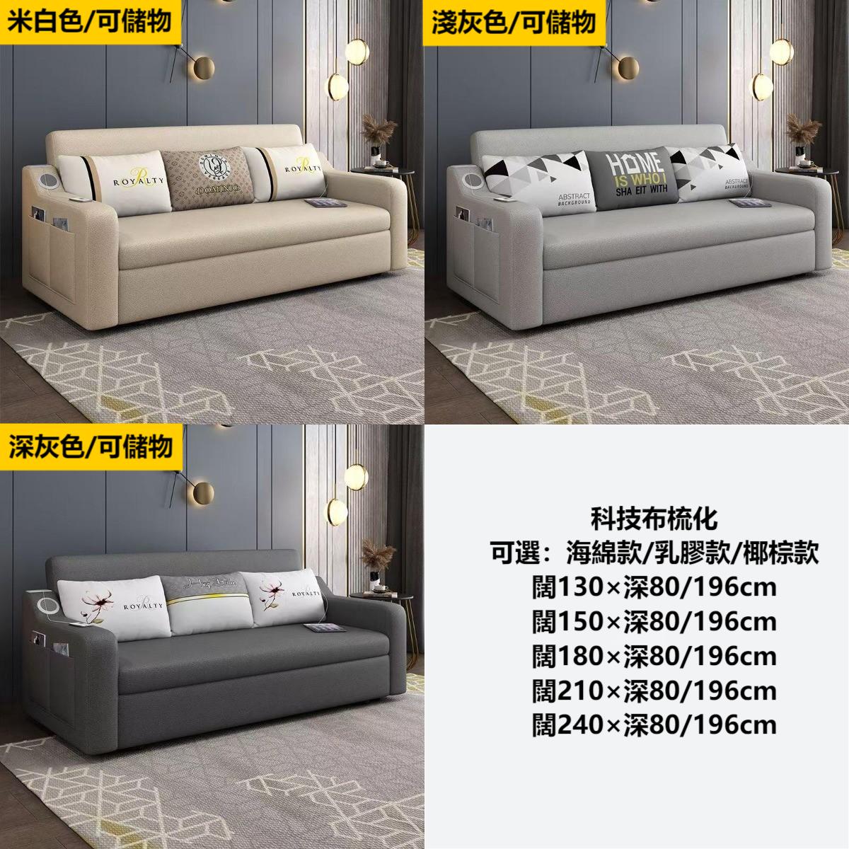 [卓越傢俬]伸縮梳化床 科技布梳化 伸縮沙發床 雙人梳化 可摺疊沙發 儲物梳化