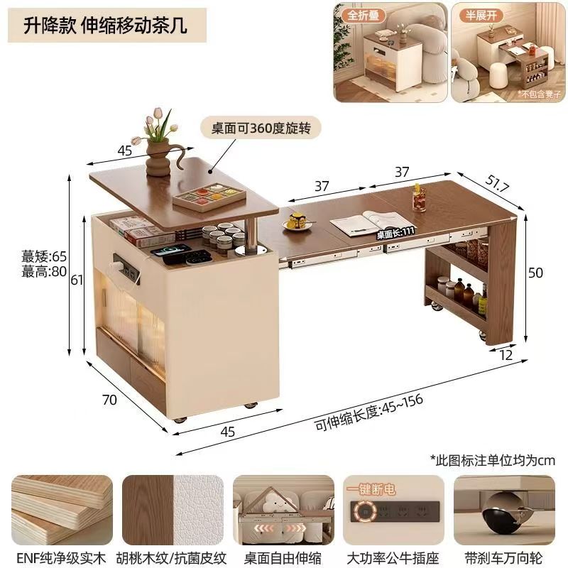 [卓越傢俬]可移動茶几 折疊茶桌 多功能升降桌餐桌 伸縮邊桌