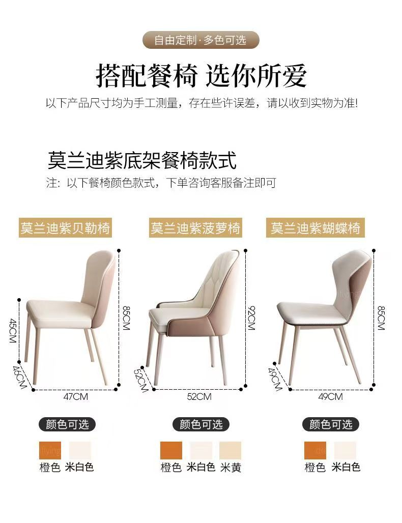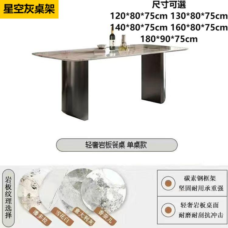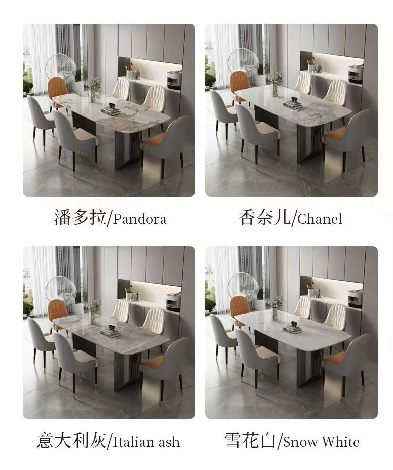 --------------------------------------- 貨號:XC-74 售價:HK$起1380 落單後7個工作日預約時間送貨 產地:中國 --------------------------------------- 產品規格 岩板颜色color:潘多拉/雪花白/意大利灰/香奈兒 框架顏色:星空灰/墨蘭紫 尺寸Size:(D/長)*(W/闊)*(H/高)cm: 單桌:120*80*75cm;HK$1688 單桌:130*80*75cm;HK$1788 單桌:140*80*75cm;HK$1888 單桌:160*80*75cm;HK$1988 單桌:180*90*75cm;HK$2088 貝勒椅*4;HK$1380 貝勒椅*6;HK$1888 菠蘿椅*4;HK$1988 菠蘿椅*6;HK$2880 椅子顏色下單請備註 ---------------------------------------
