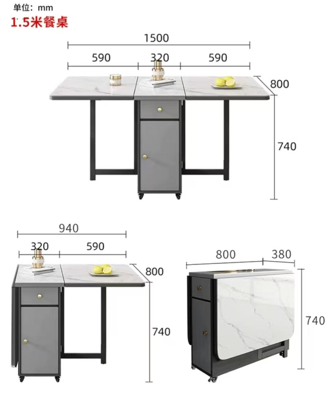 [卓越傢俬]岩板餐桌 折疊餐枱 餐桌 折疊椅 餐桌椅 食飯桌