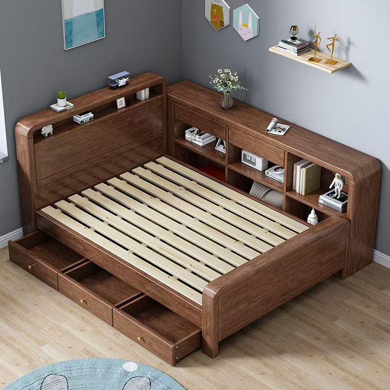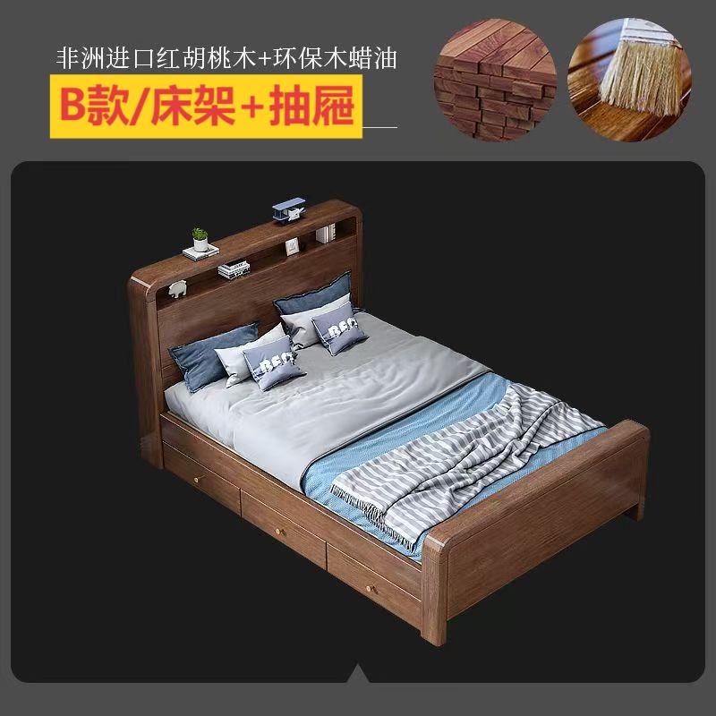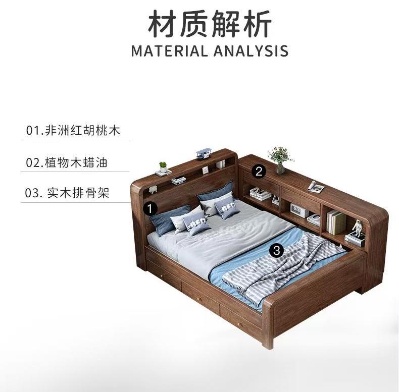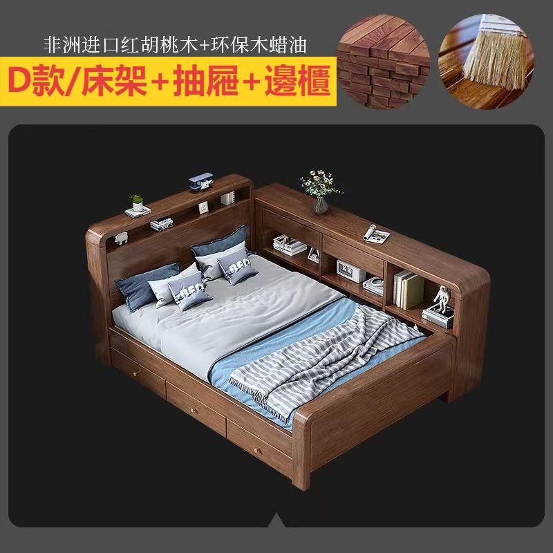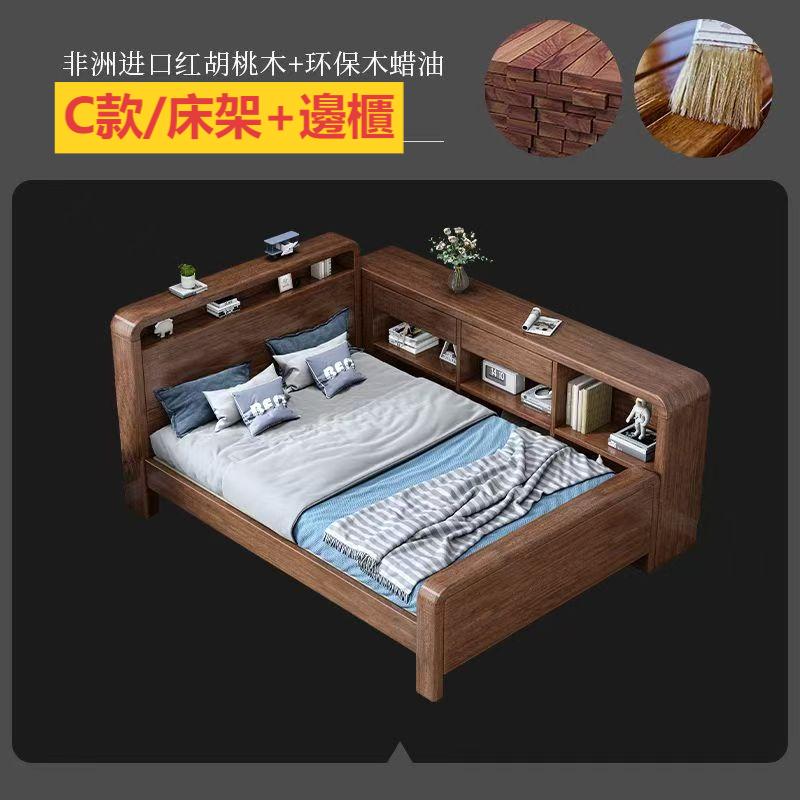 [卓越傢俬]帶抽屜儲物床 雙人床 組合床 床邊櫃 實木床