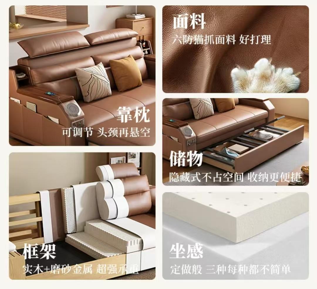 [卓越傢俬]折疊梳化床 貓抓皮梳化 多功能沙發床 儲物沙發