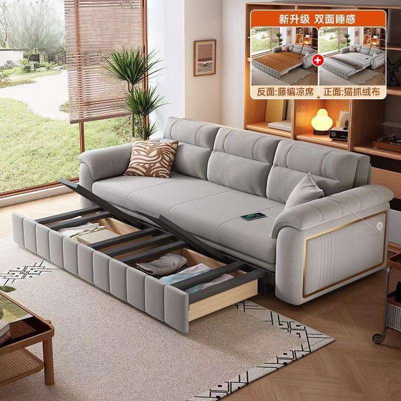 [卓越傢俬]折疊梳化床 貓抓絨梳化 藤編涼席梳化 多功能沙發 雙面坐墊沙發床