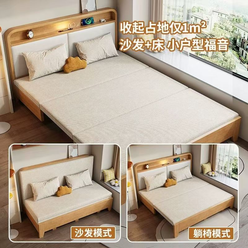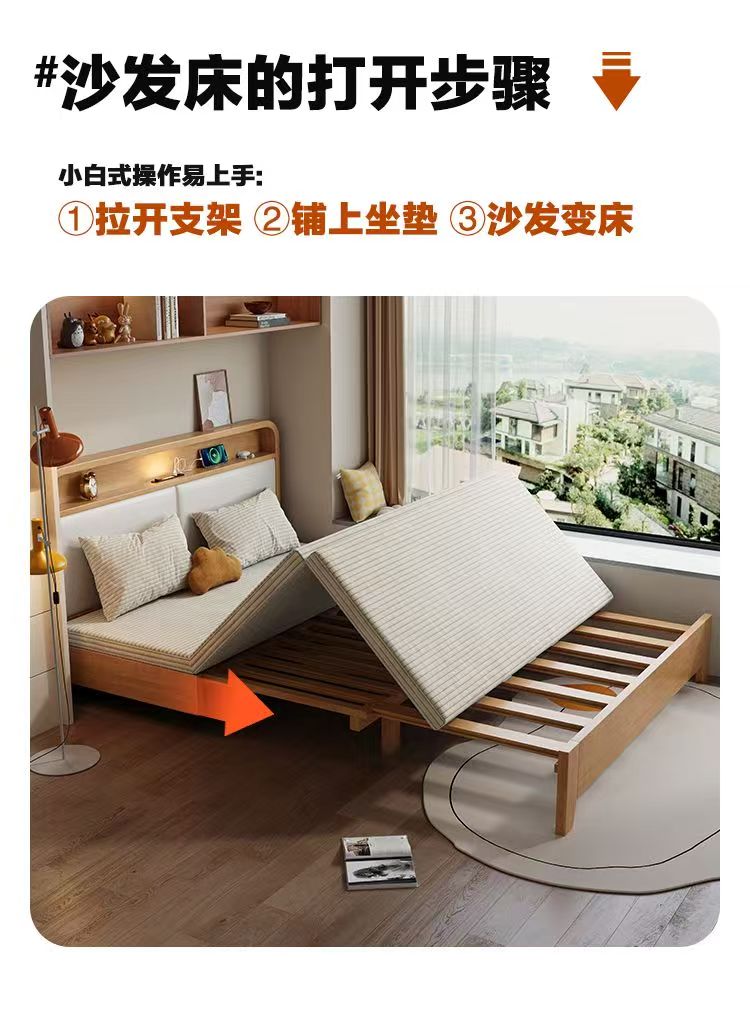 [卓越傢俬]摺疊梳化床 雙人梳化 實木框架梳化 抽拉沙發床 布藝沙發
