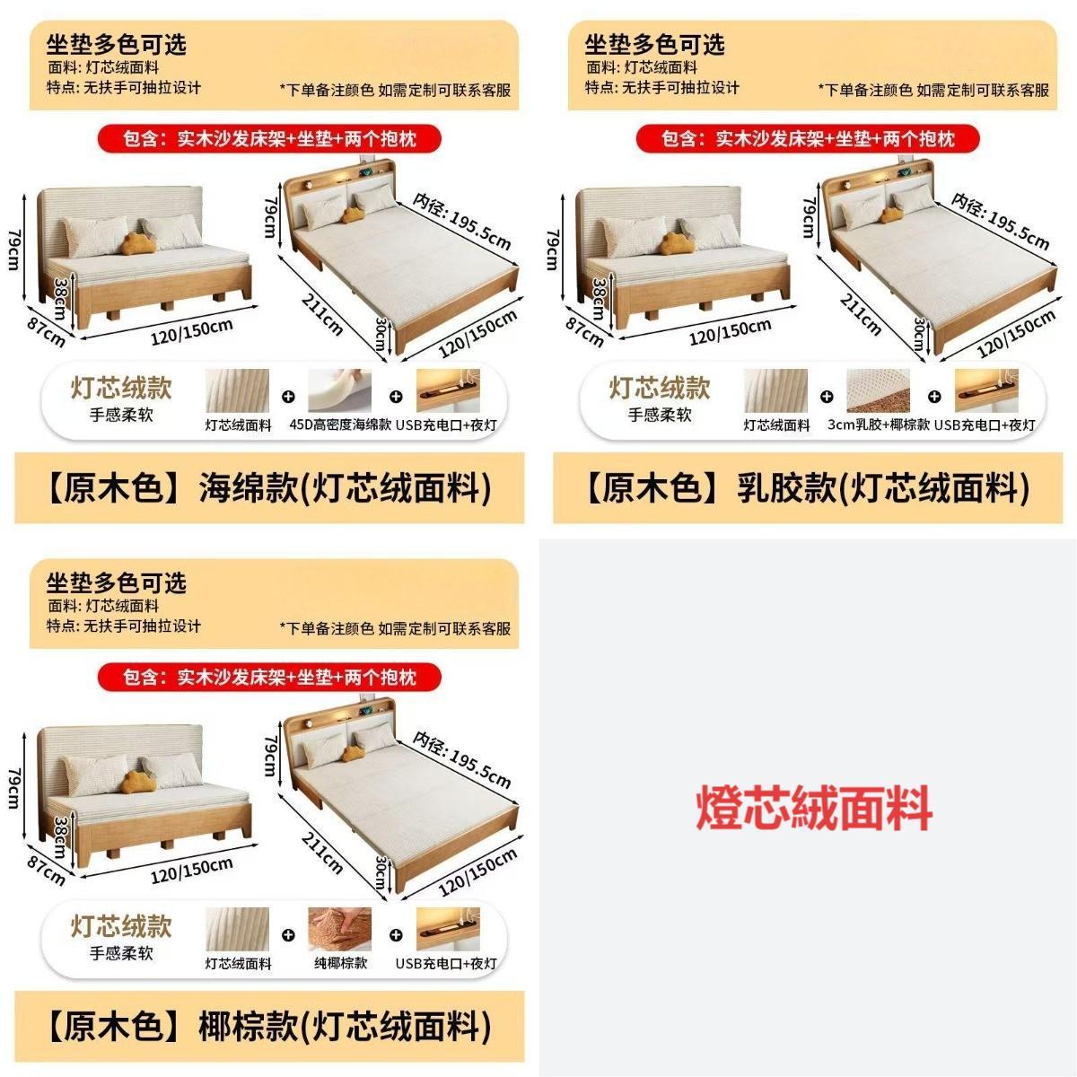 --------------------------------------- 貨號:XC-199 售價:HK$起3380 落單後7個工作日預約時間送貨 產地:中國 --------------------------------------- 產品規格 框架颜色color:原木色/胡桃色/櫻桃木色/白色 材質颜色color:圖片色(下單請備註顏色) 尺寸Size:(D/長)*(W/闊)*(H/高)cm: 海綿款: 120*87*79cm;HK$3380 150*87*79cm;HK$3680 乳膠款: 120*87*79cm;HK$3680 150*87*79cm;HK$3980 椰棕款: 120*87*79cm;HK$3980 150*87*79cm;HK$4280 ---------------------------------------