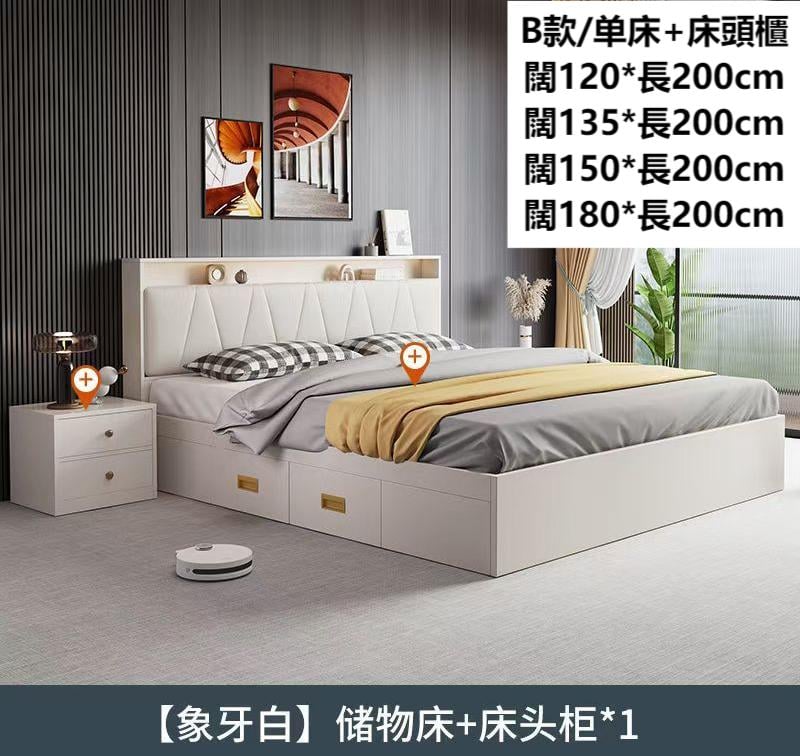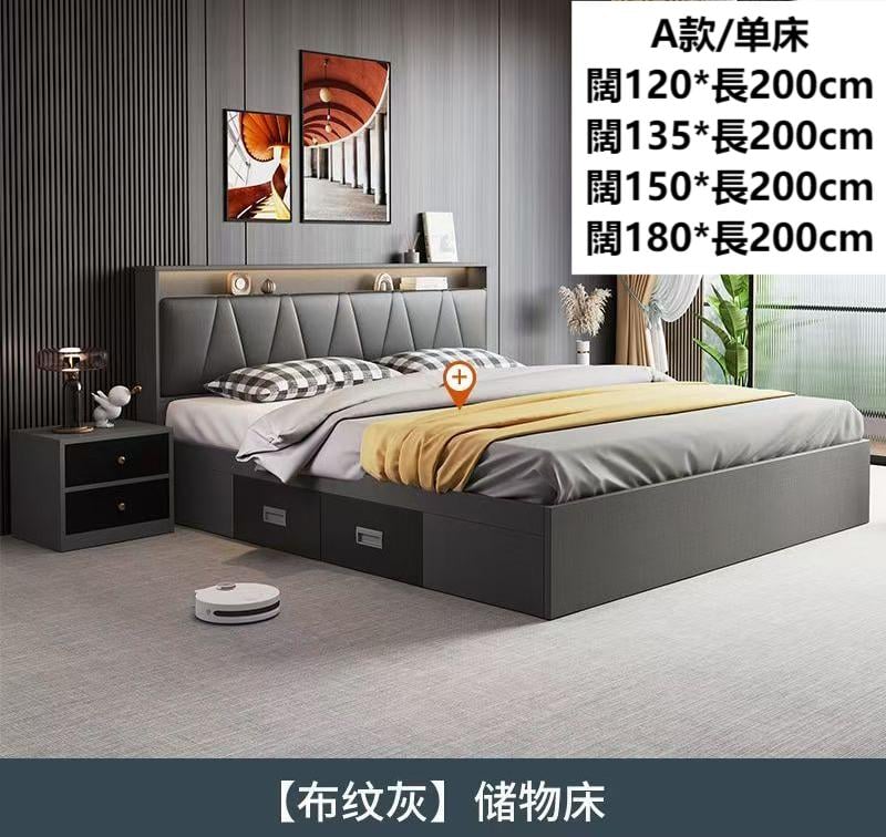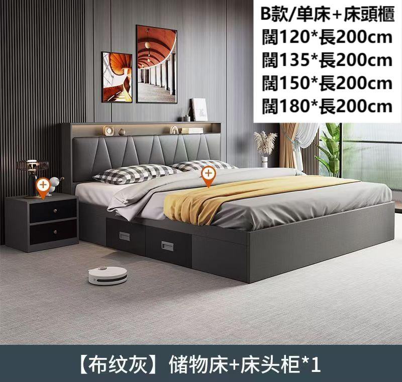 --------------------------------------- 貨號:XC-52 售價:HK$起2380 落單後7個工作日預約時間送貨 產地:中國 --------------------------------------- 產品規格 颜色color:布紋灰/象牙白 尺寸Size:(D/長)*(W/闊)*(H/高)cm: A款/單床: 120*200cm;HK$2380 135*200cm;HK$2480 150*200cm;HK$2580 180*200cm;HK$2780 B款/單床+床頭櫃*1: 120*200cm;HK$2780 135*200cm;HK$2880 150*200cm;HK$2980 180*200cm;HK$3080 C款/單床+10cm床墊: 120*200cm;HK$3080 135*200cm;HK$3280 150*200cm;HK$3480 180*200cm;HK$3680 ---------------------------------------