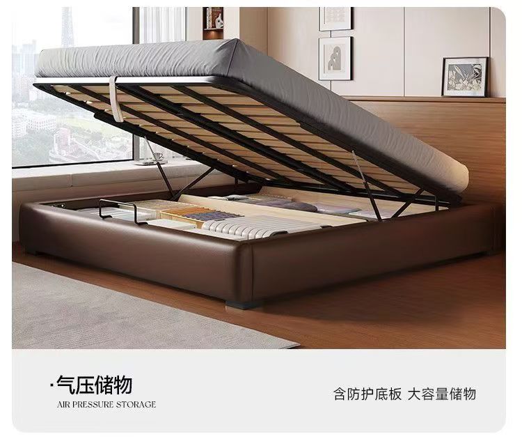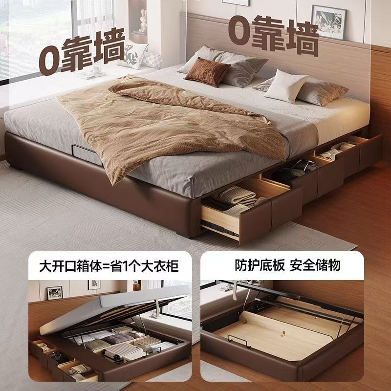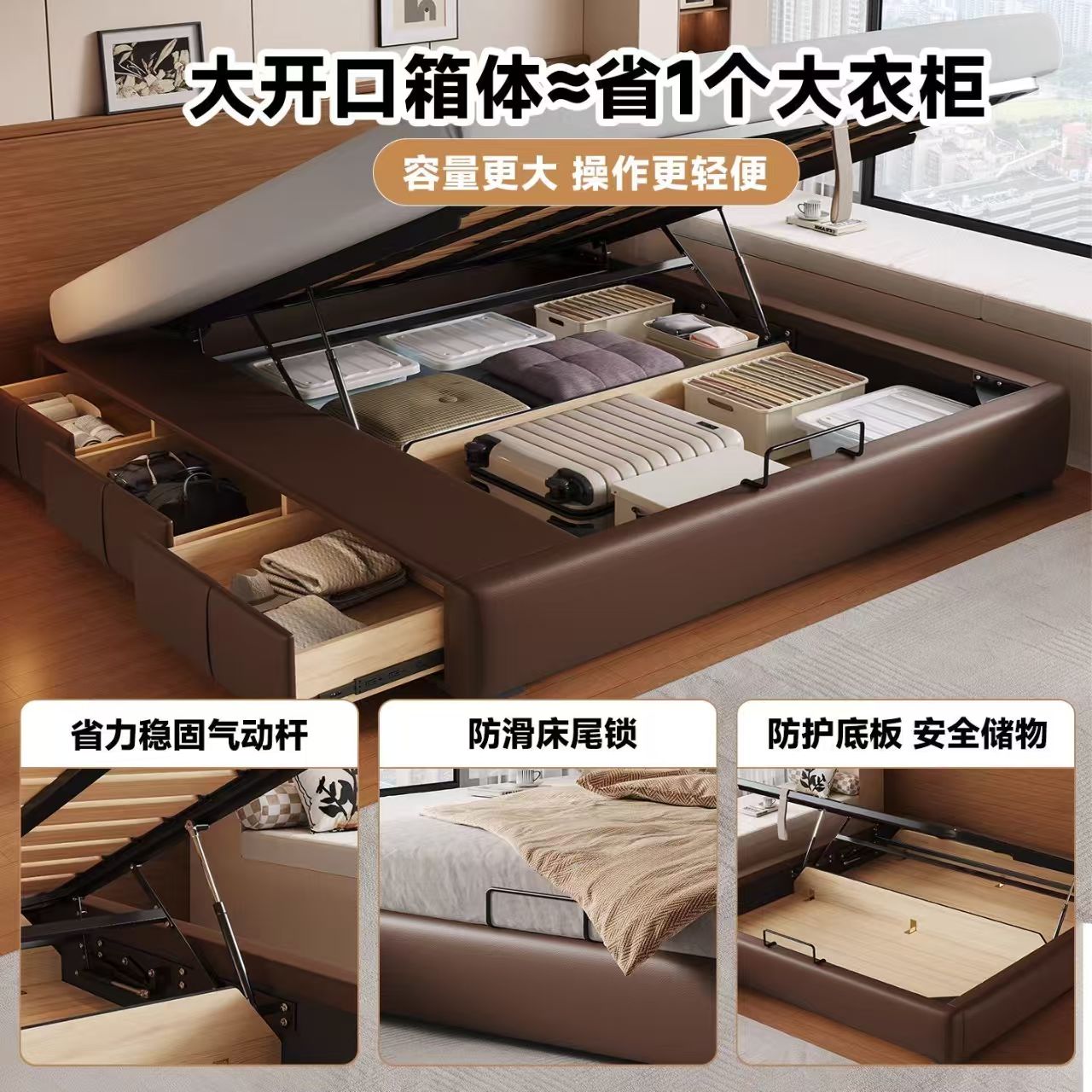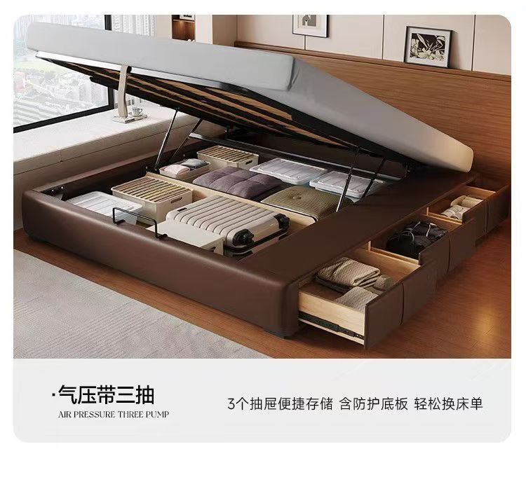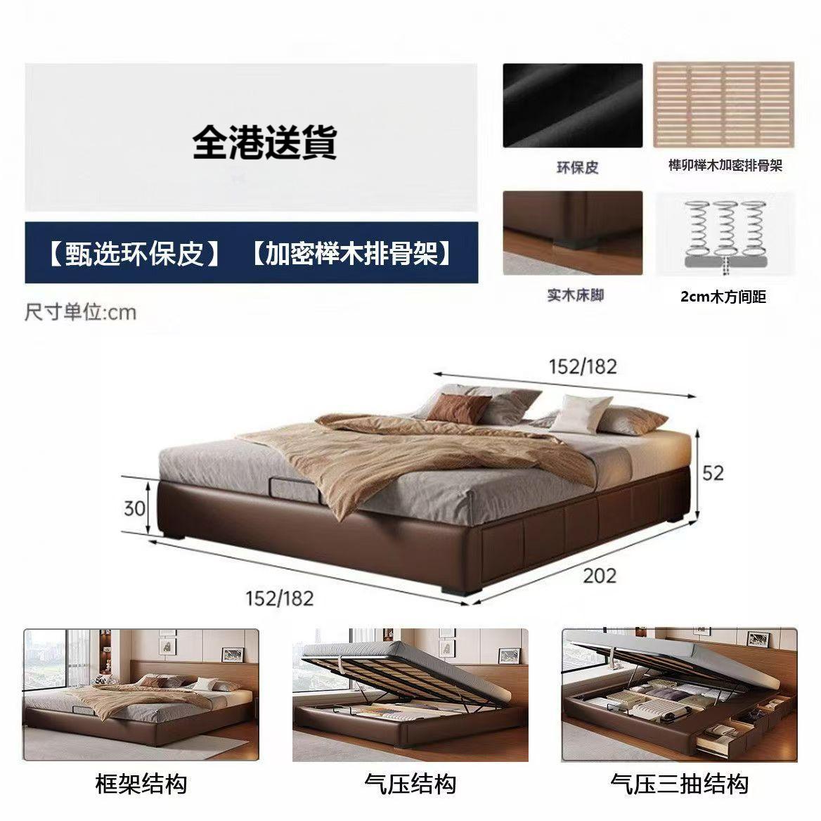 [卓越傢俬]無床頭油壓床 升降床 雙人床 皮質床 框架床 帶抽屜儲物床