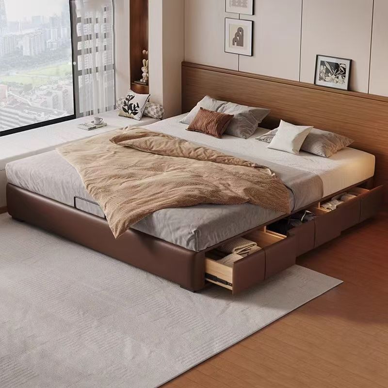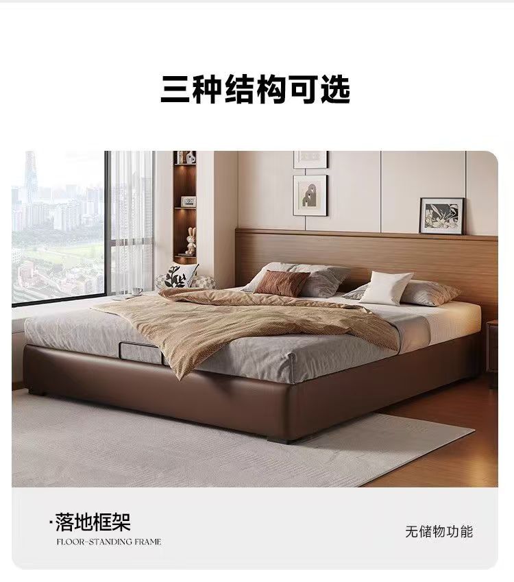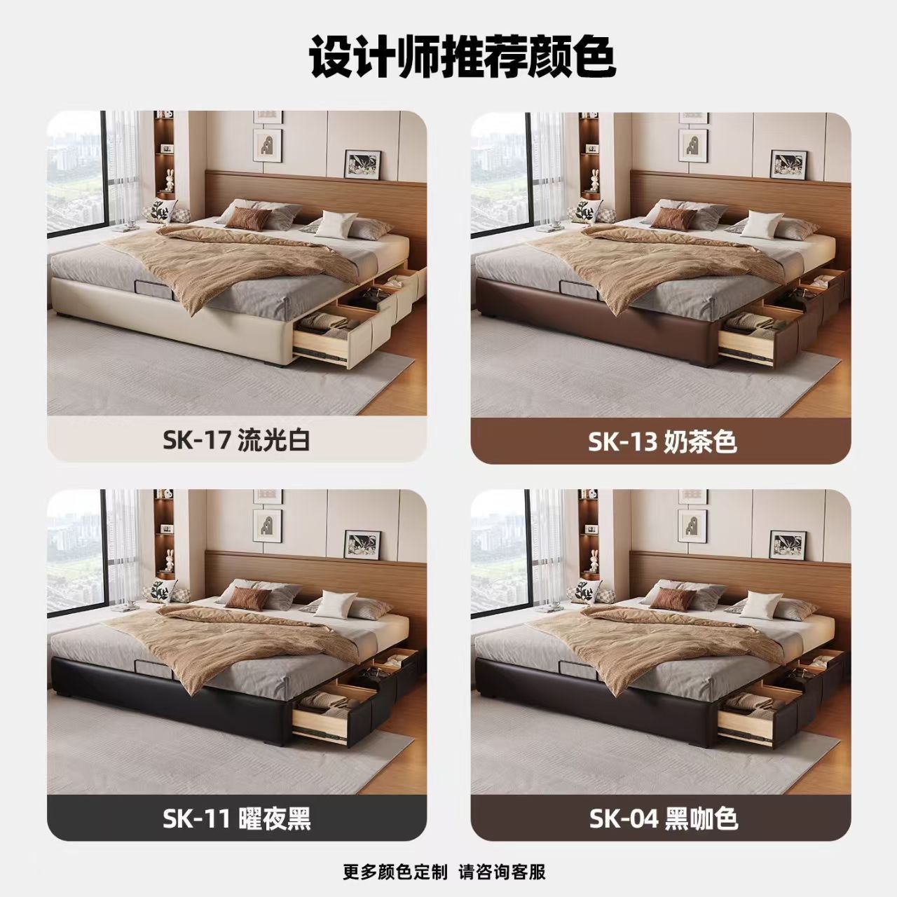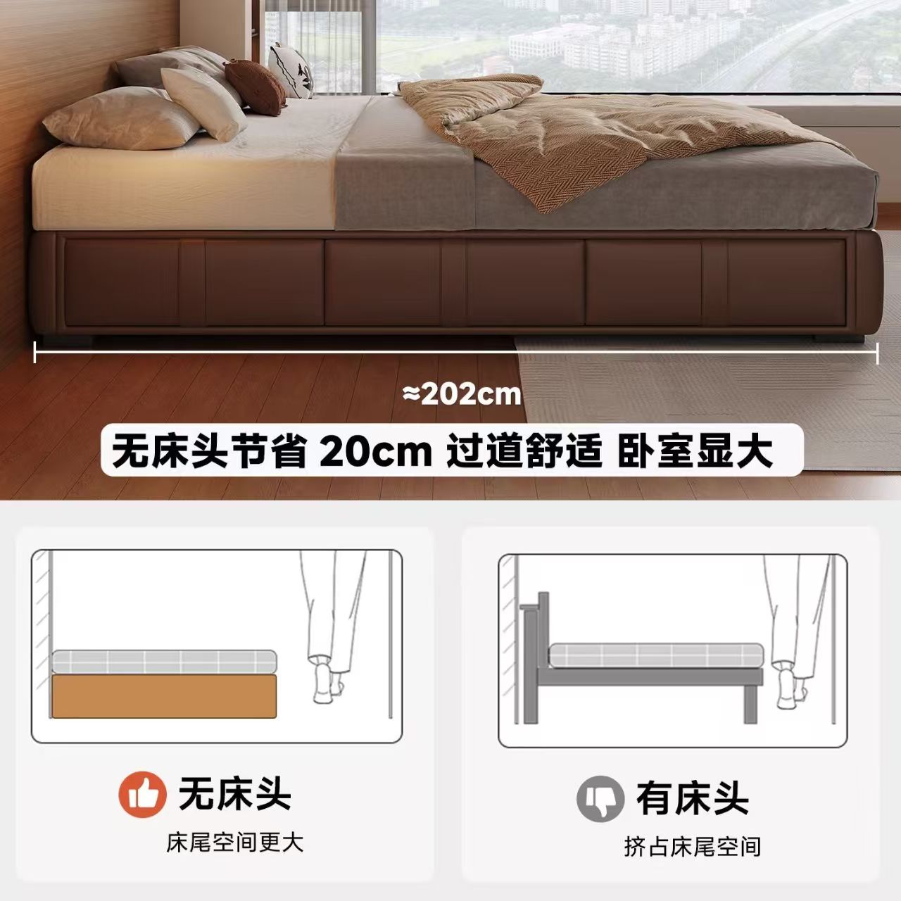 [卓越傢俬]無床頭油壓床 升降床 雙人床 皮質床 框架床 帶抽屜儲物床