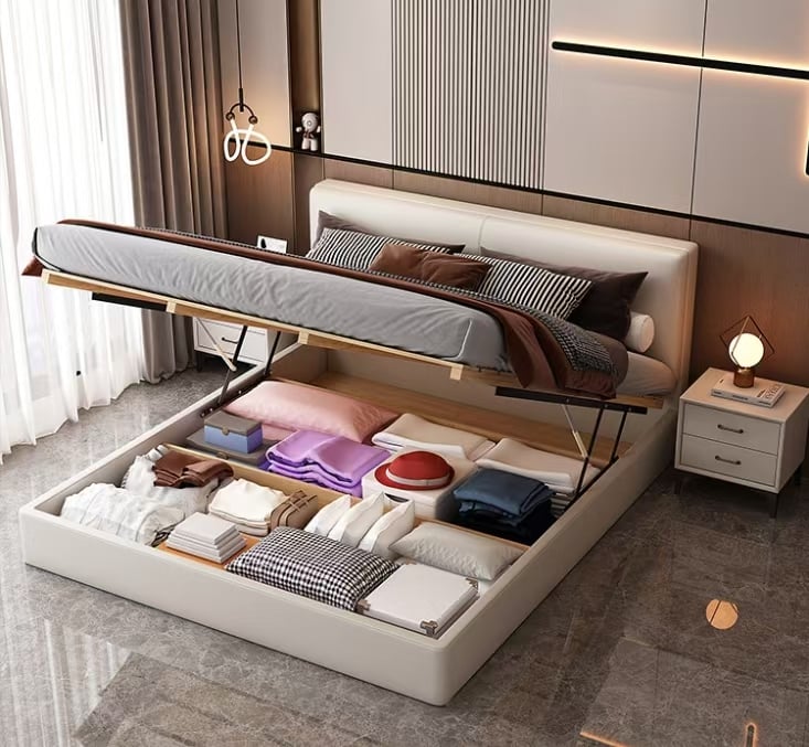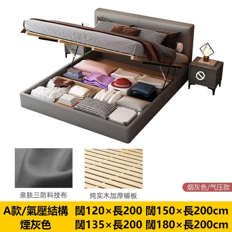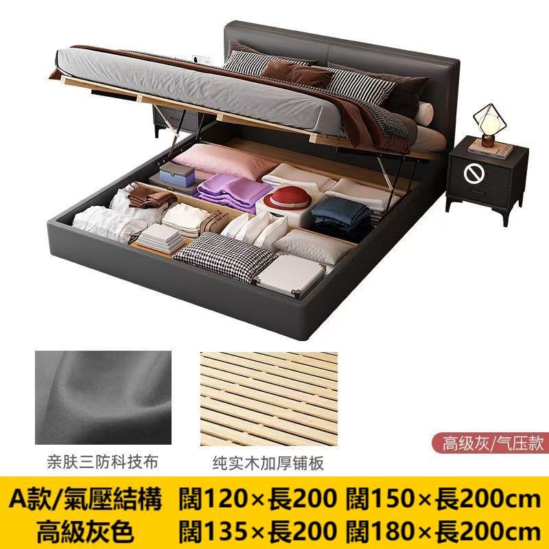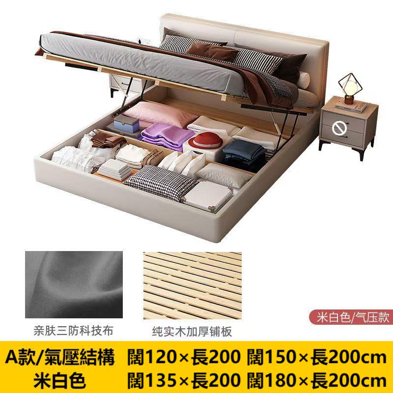 [卓越傢俬]科技布框架床 氣壓升降床 儲物床 置物床 雙人床 軟靠床