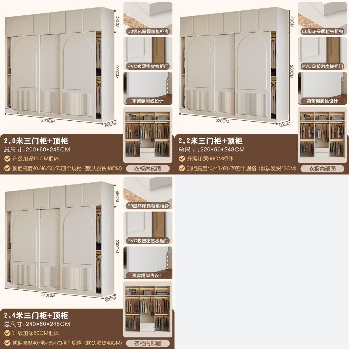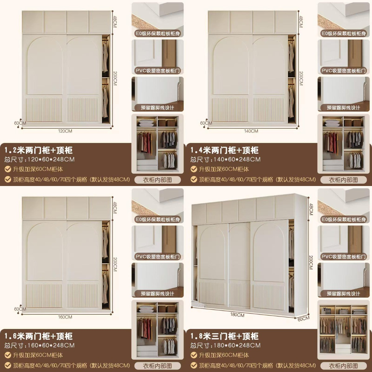 衣櫃+頂櫃:240*60*248cm