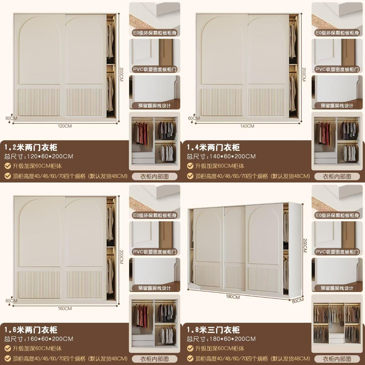 衣櫃+頂櫃:200*60*248cm