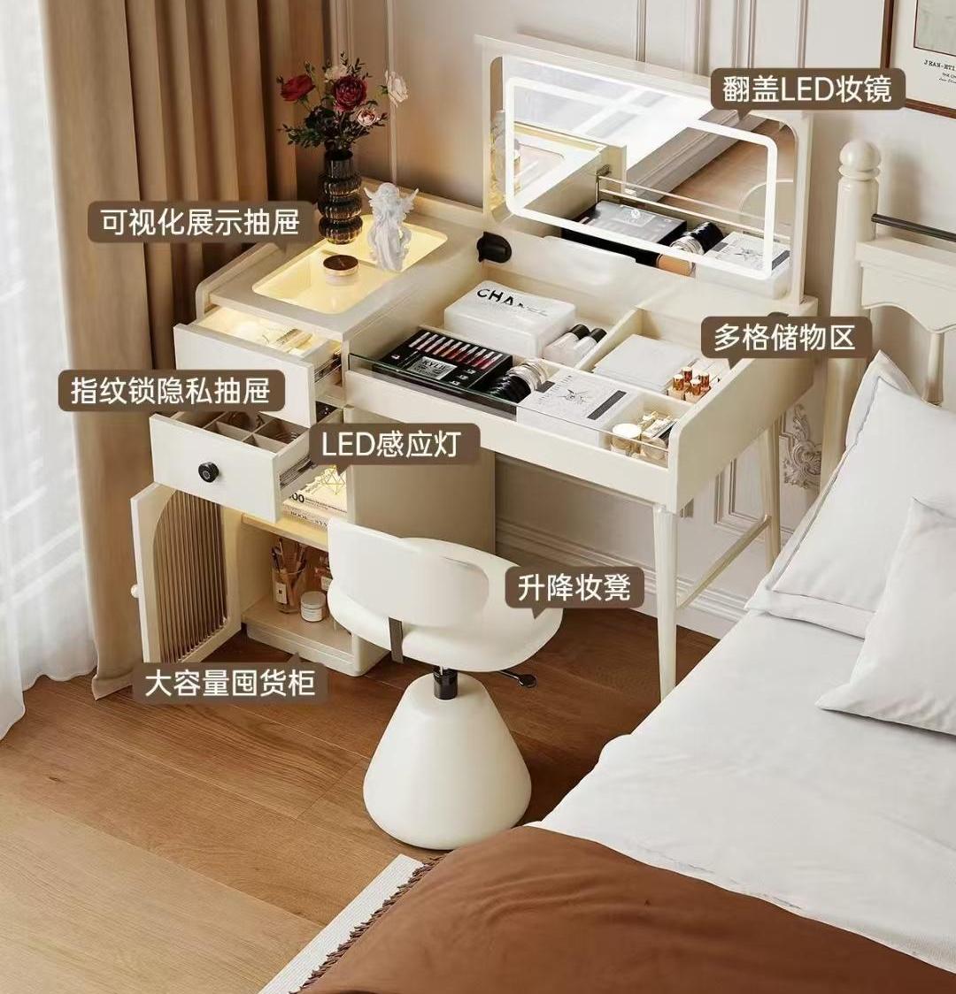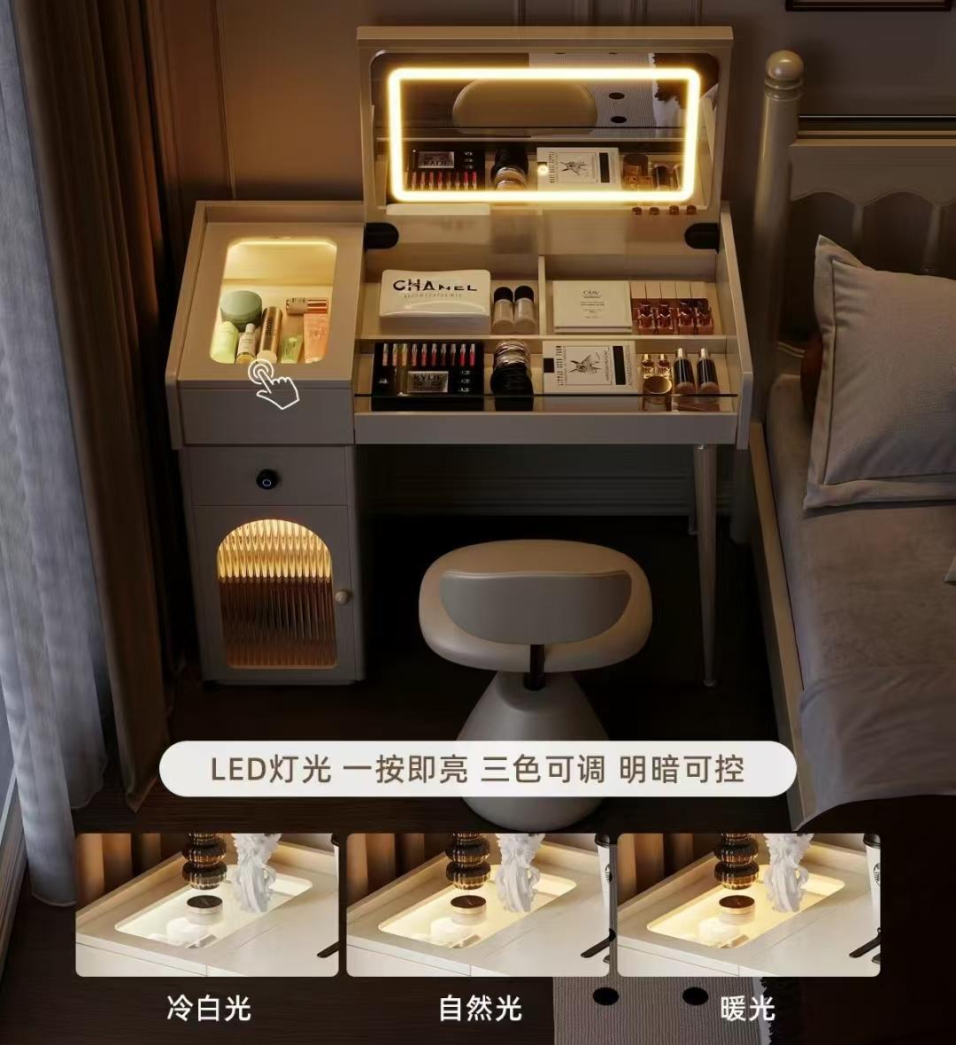 [卓越傢俬]翻蓋梳妝桌 梳妝枱 床頭櫃 床邊櫃 梳妝品收納櫃