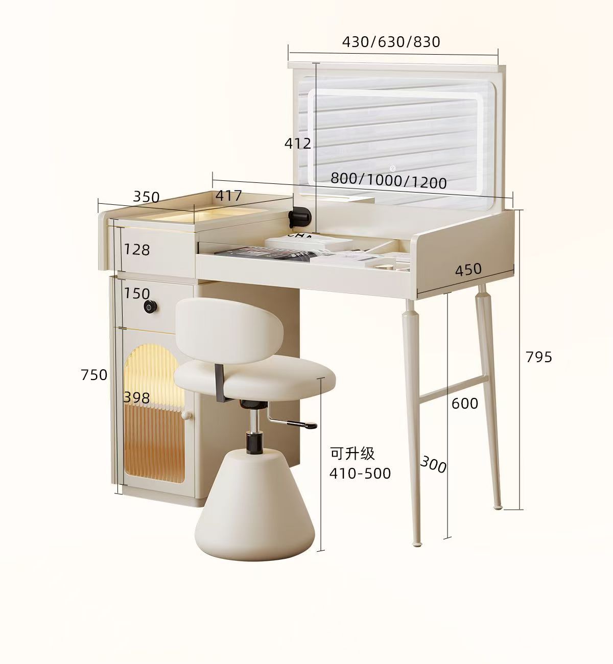 --------------------------------------- 貨號:XC-113 售價:HK$起4080 落單後7個工作日預約時間送貨 產地:中國 --------------------------------------- 產品規格 颜色color:圖片色 尺寸Size:(D/長)*(W/闊)*(H/高)cm: 0.8m梳妝桌;HK$4080 1.0m梳妝桌;HK$4380 1.2m梳妝桌;HK$4680 0.8m梳妝桌+升降凳;HK$4588 1.0m梳妝桌+升降凳;HK$4888 1.2m梳妝桌+升降凳;HK$5188 ---------------------------------------