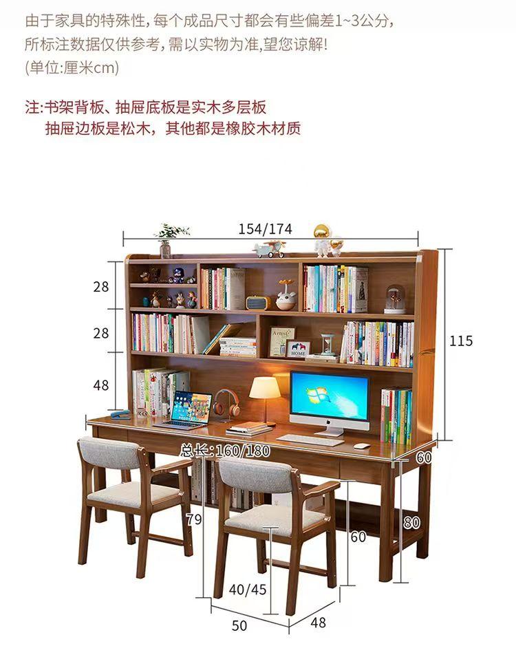 --------------------------------------- 貨號:XC-166 售價:HK$起1988 落單後7個工作日預約時間送貨 產地:中國 --------------------------------------- 產品規格 颜色color:全胡桃色/全原木色/全白色/藍色+白書架/粉色+白書架/灰色+白書架 尺寸Size:(D/長)*(W/闊)*(H/高)cm: 書桌: 160*60*195cm;HK$1988 180*60*195cm;HK$2188 書桌+兩椅: 160*60*195cm;HK$2680 180*60*195cm;HK$2880 ---------------------------------------