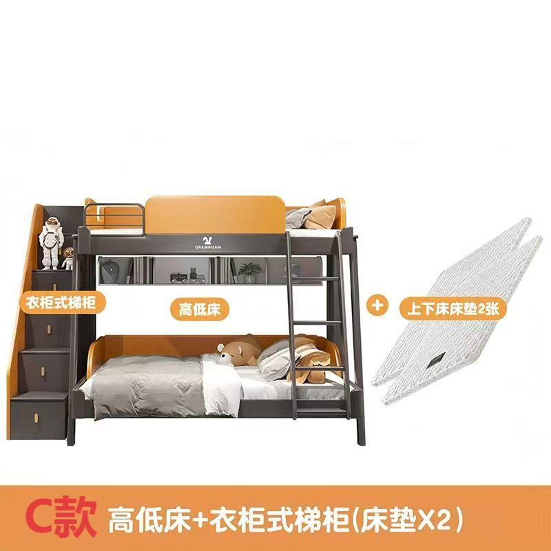 高低床+雙抽+衣櫃式梯櫃:135cm*190cm
