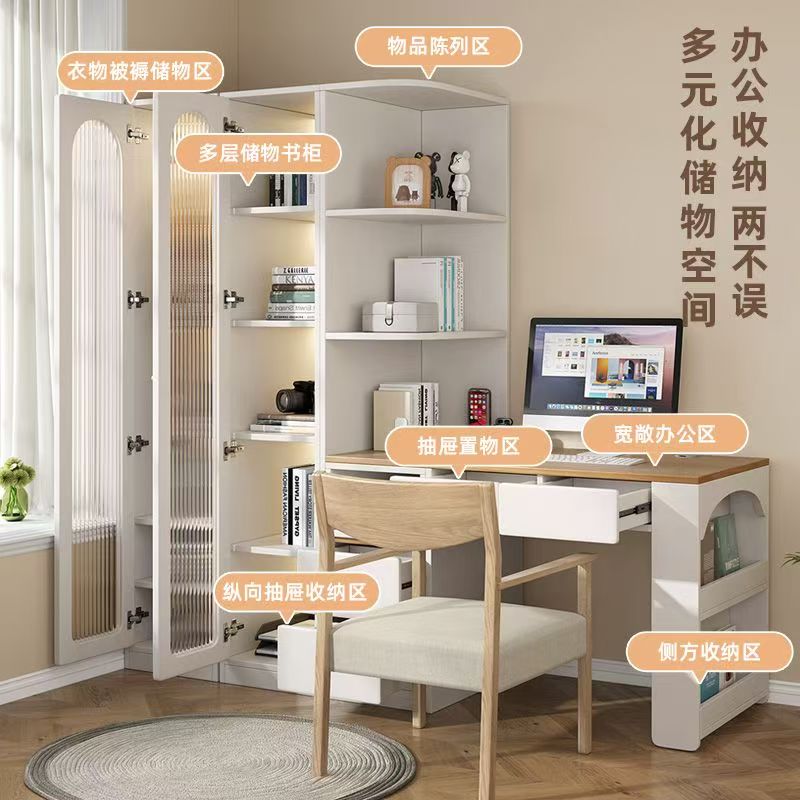 雙人書桌+書櫃+衣櫃:222*60*190cm