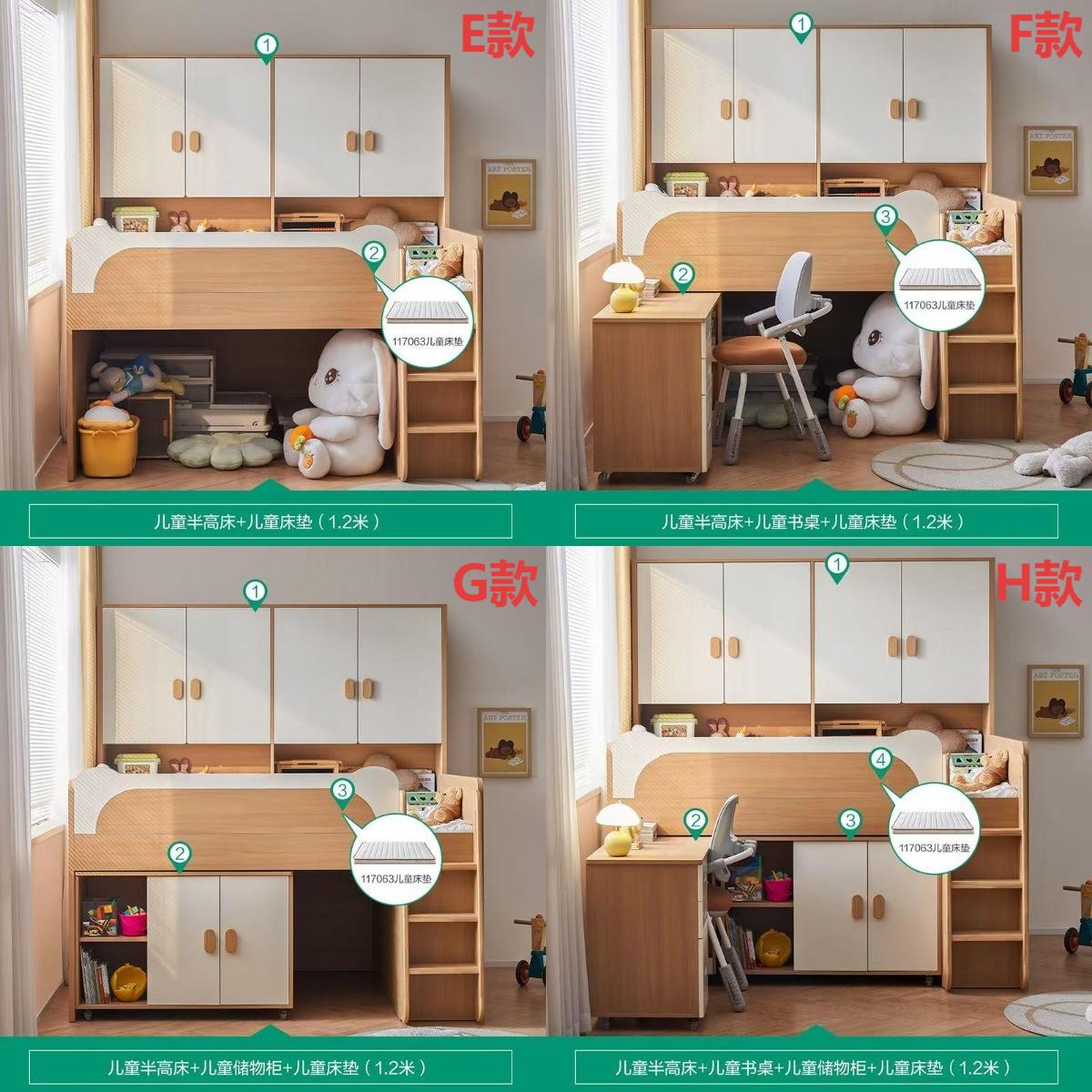 H款:120cm半高床+床墊+書桌+儲物櫃