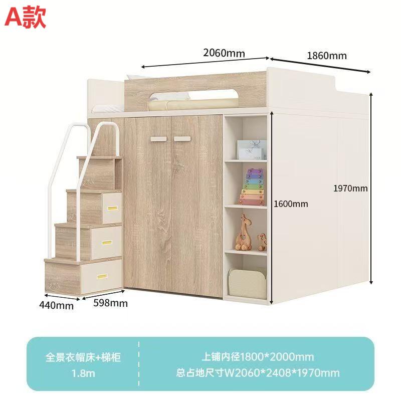 --------------------------------------- 貨號:XC-202 售價:HK$起7860 落單後7個工作日預約時間送貨 產地:中國 --------------------------------------- 產品規格 颜色color:圖片色 尺寸Size:(D/長)*(W/闊)*(H/高)cm: A款180cm全景衣帽床+梯櫃;HK$9380 B款150cm全景衣帽床+梯櫃;HK$8880 C款135cm全景衣帽床+梯櫃;HK$8380 D款120cm全景衣帽床+梯櫃;HK$7860 ---------------------------------------