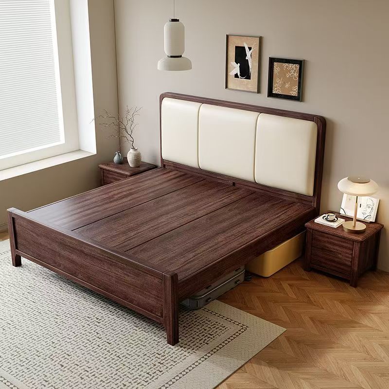[卓越傢俬]實木框架床 多功能儲物床頭 雙人床 高腳床