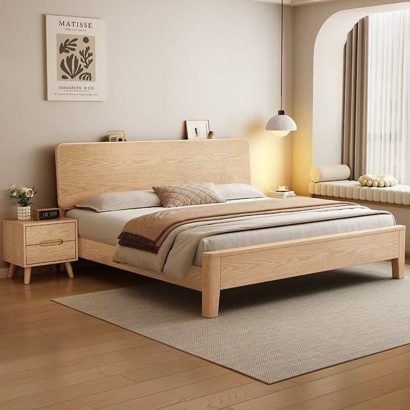 [卓越傢俬]白蠟木床架 框架床 排骨床 雙人床 多功能儲物床頭