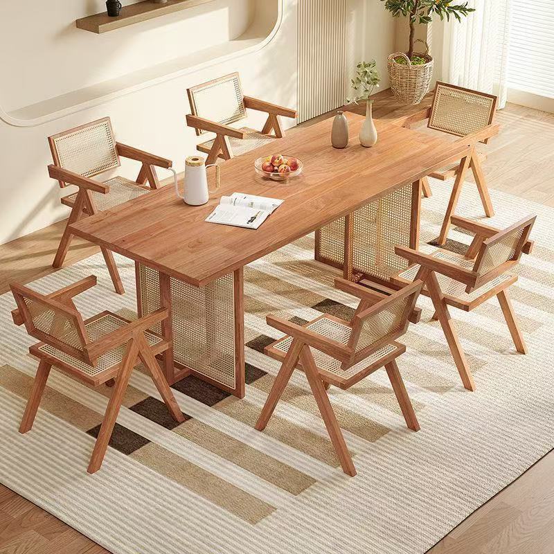 [卓越傢俬]藤編餐桌椅 長方形桌 飲茶桌 實木桌椅 食飯桌