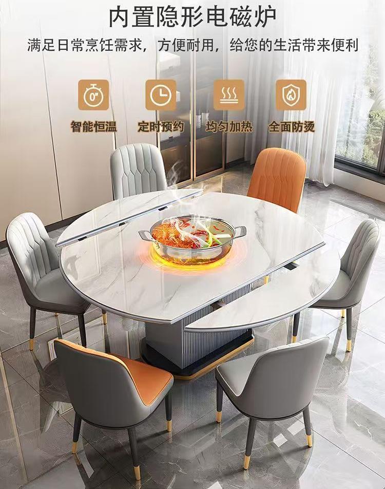 [卓越傢俬]可伸縮餐桌 岩板餐桌 餐桌椅 方圓兩用餐枱 食飯桌