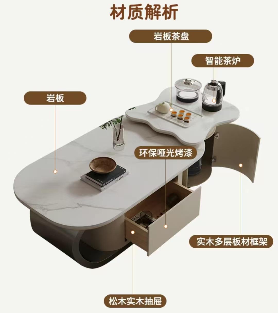 [卓越傢俬]岩板茶几 茶幾 泡茶桌 可移動茶枱 組合茶几 邊櫃