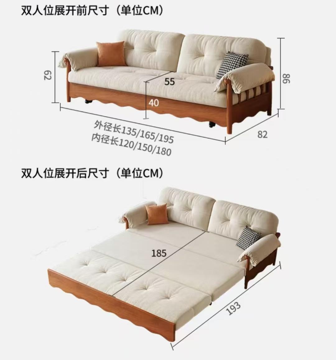 [卓越傢俬]折疊梳化床 伸縮沙發床 絨布梳化 雙人沙發 抽拉梳化