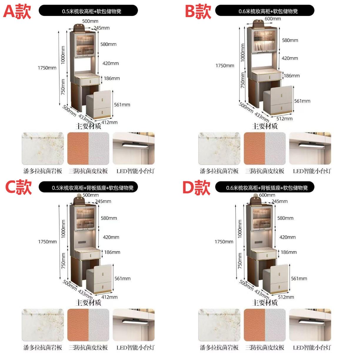G款:0.5米梳妝高櫃+插座+凳鏡