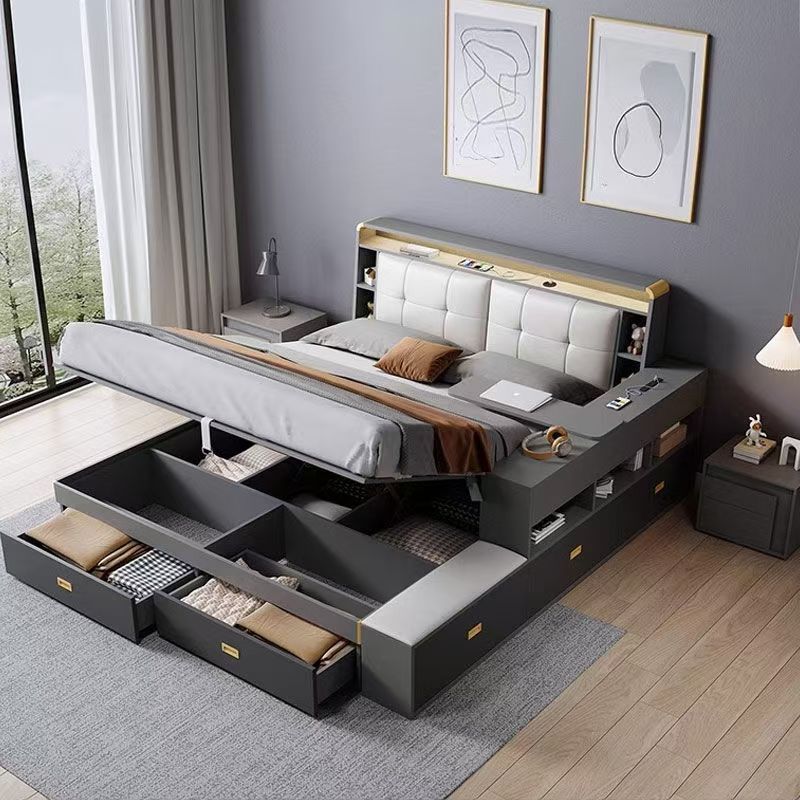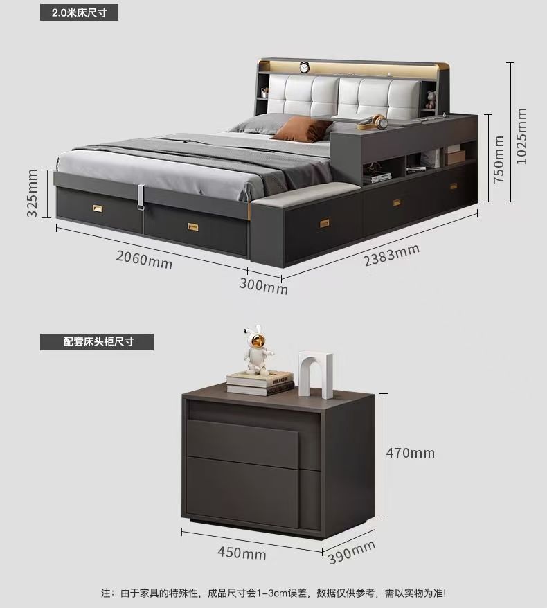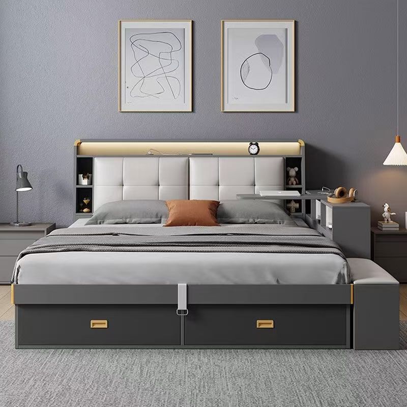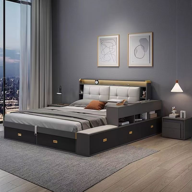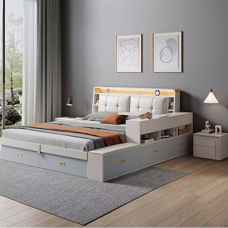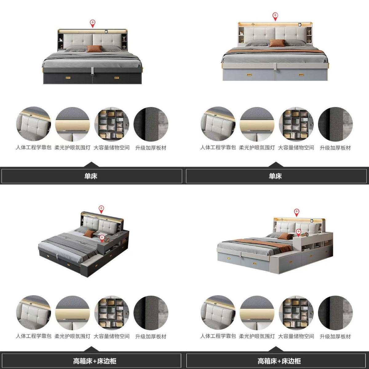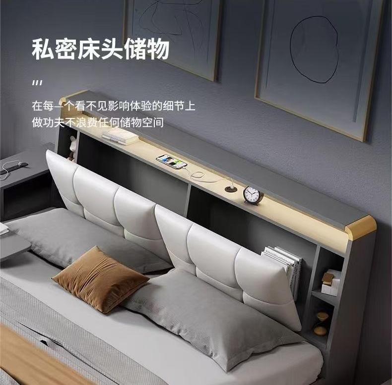 [卓越傢俬]榻榻米儲物床 雙人床 落地床 床邊櫃 箱框床 軟包床