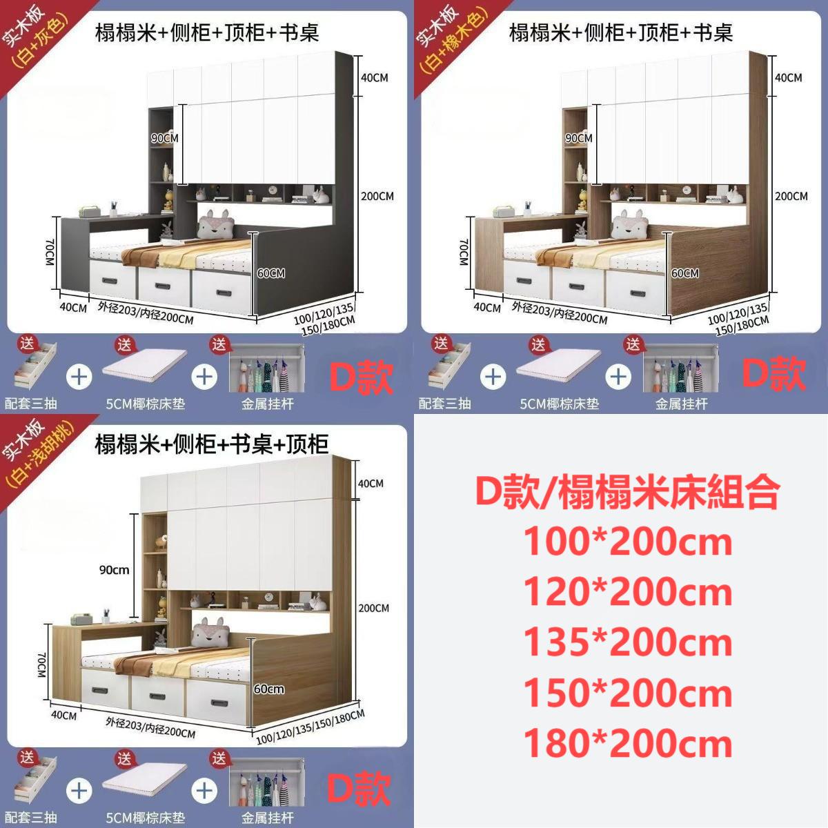 D款/床+衣櫃/頂櫃/書桌:闊100×長200cm