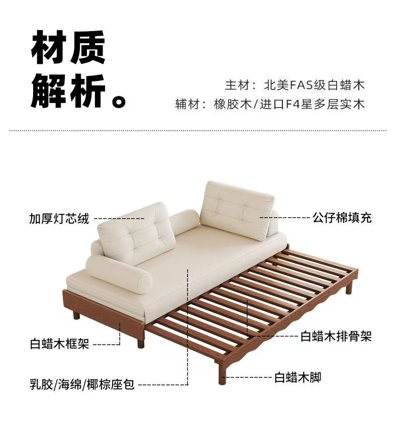 [卓越傢俬]白蠟木梳化 折疊梳化床 雙人梳化 抽拉沙發床 伸縮梳化