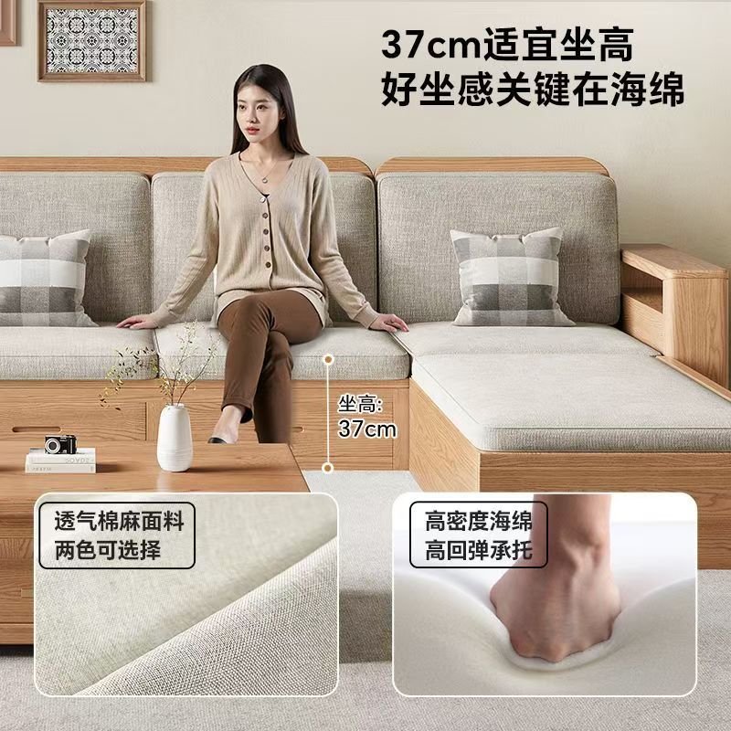 [卓越傢俬]貴妃位梳化 棉麻布梳化 直排梳化 多人位梳化 儲物沙發 實木梳化