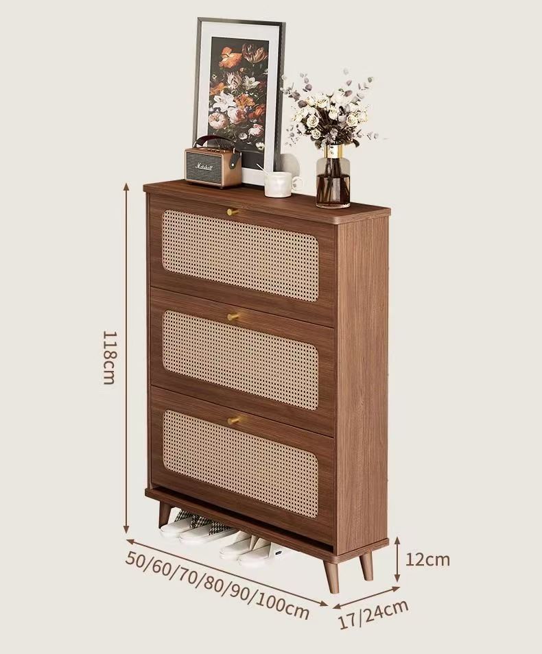 [卓越傢俬]超薄翻斗鞋櫃 藤編鞋櫃 玄關櫃 入戶鞋架 門廳櫃 收納櫃 窄身鞋櫃
